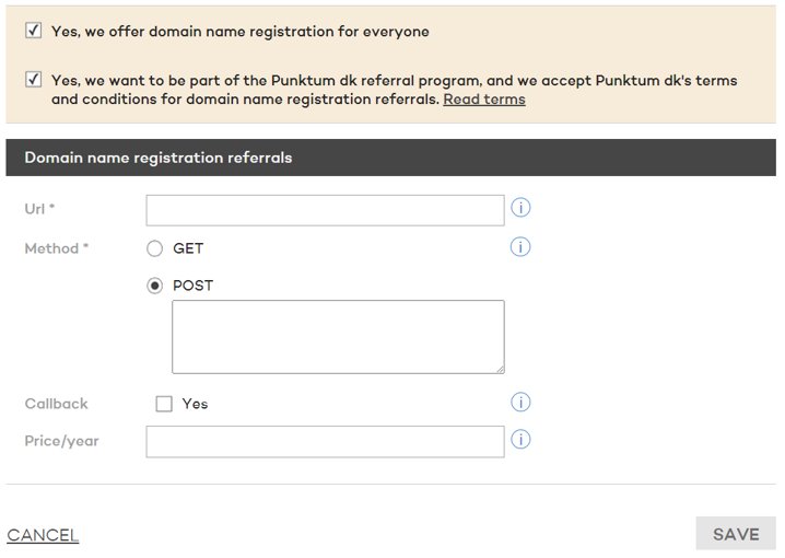 Choose to participate in the Punktum dk referral program. Accept the terms. Now you can fill the registration referral information.